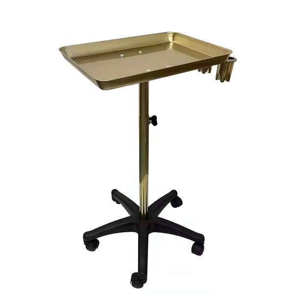 ✦ Bandeja Metálica Dorada: Resistente, amplia y fácil de limpiar, ideal para colocar instrumentos o productos durante el servicio.
