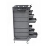 El Auxiliar Profesional Oni con Cerradura y Bandejas Extraíbles es tu aliado perfecto para mantener el orden sin sacrificar movilidad. Fabricado en plástico resistente, este diseño ofrece practicidad total para salones de alto rendimiento.