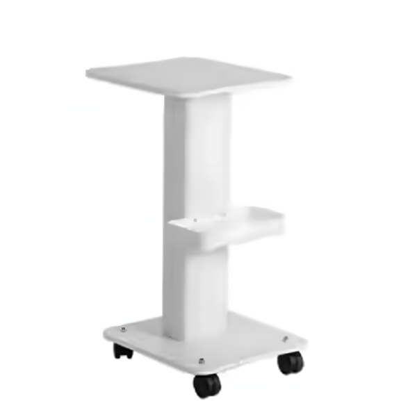 Descubre el carrito Noa es una herramienta indispensable en salones, spas o clínicas estéticas. Su estructura de metal con acabado blanco ofrece estabilidad y resistencia para sostener vaporizadores, dermoabrasión u otros aparatos profesionales.