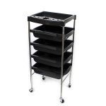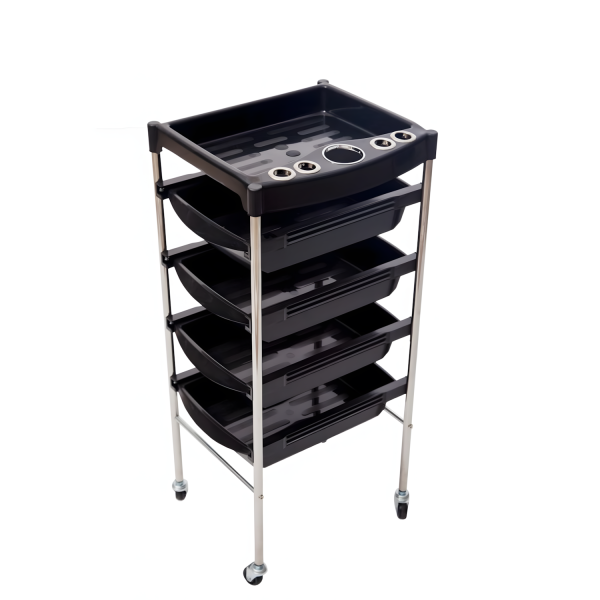 El Carrito Auxiliar Xiana está diseñado para barberos y estilistas que necesitan orden, resistencia y acceso rápido a sus herramientas. Cuenta con 5 bandejas plásticas deslizables, estructura metálica cromada y una práctica bandeja superior con portaherramientas integrados para mantener todo bajo control.