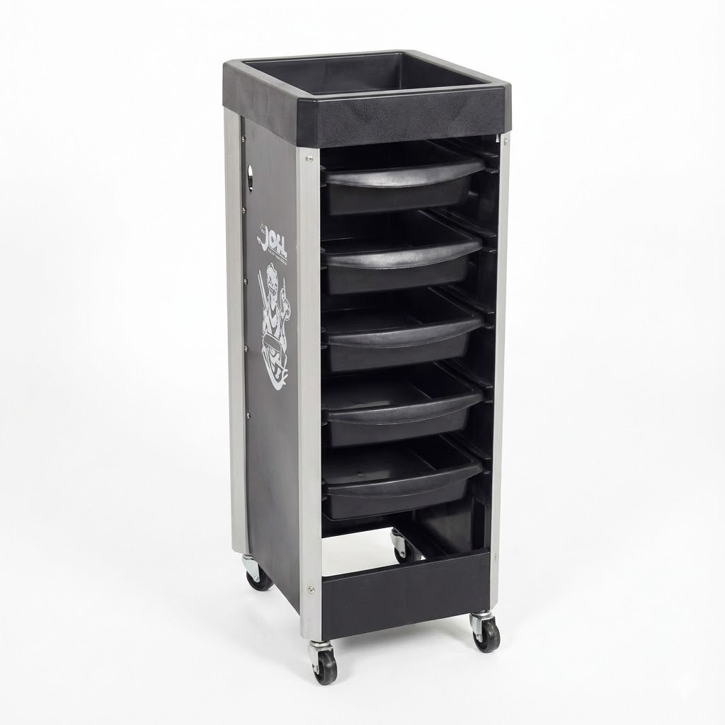 El Carrito Auxiliar Profesional es la solución perfecta para mantener orden en el área de trabajo. Su diseño negro con detalles dorados combina elegancia con funcionalidad, mientras los cajones y gabinete facilitan el almacenaje seguro de herramientas. Incluye un cajón con llave y compartimentos laterales para acceso rápido a accesorios. Ideal para salones de belleza, barberías y spas que buscan eficiencia y estilo. ✨