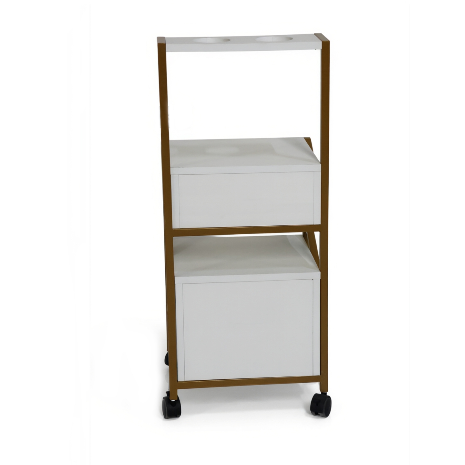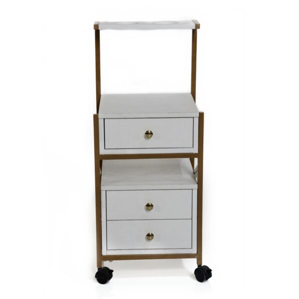 El Auxiliar Profesional Kaie con acabado tipo mármol es el equilibrio ideal entre lujo, funcionalidad y estilo. Diseñado para realzar la imagen de tu salón, spa o centro de estética, ofrece almacenamiento eficiente y una presencia estética inigualable.