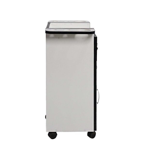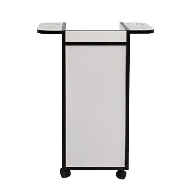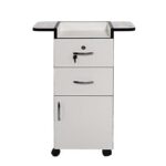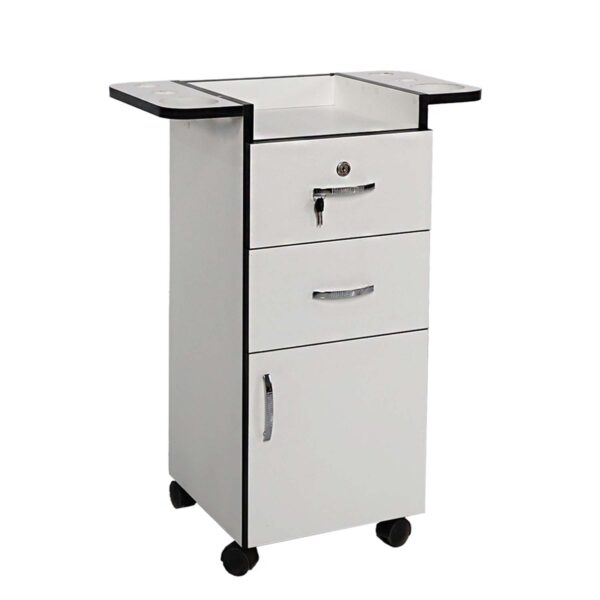 Convierte tu espacio de trabajo en un lugar más funcional, elegante y ordenado con este carrito auxiliar diseñado especialmente para salones de belleza y barberías que buscan transmitir profesionalismo y confianza. Su acabado en blanco luminoso con bordes negros proyecta limpieza y modernidad, mientras sus tres compartimentos (cajones amplios con cerradura y gabinete inferior) te permiten tener todo a mano y bajo control.