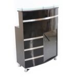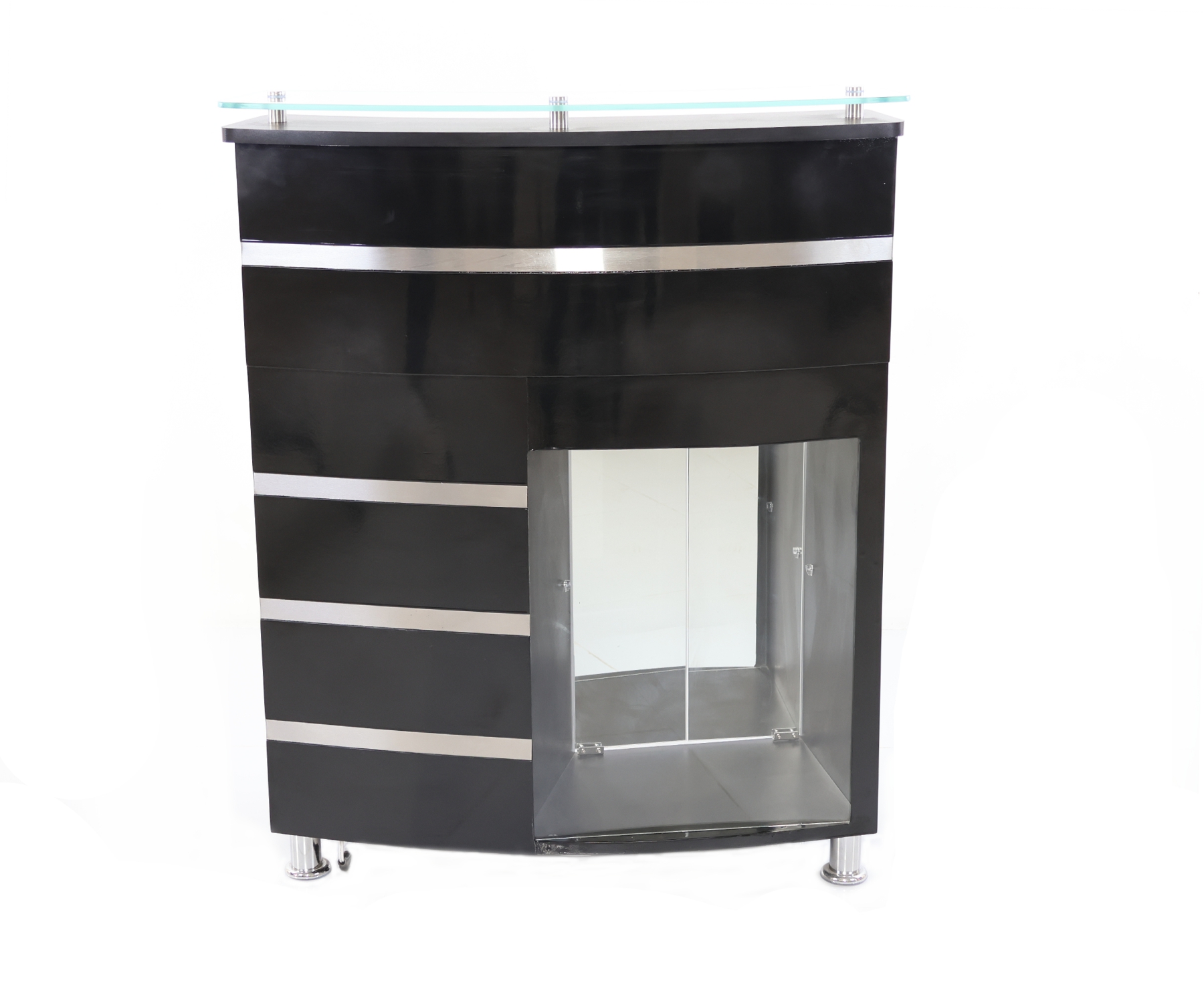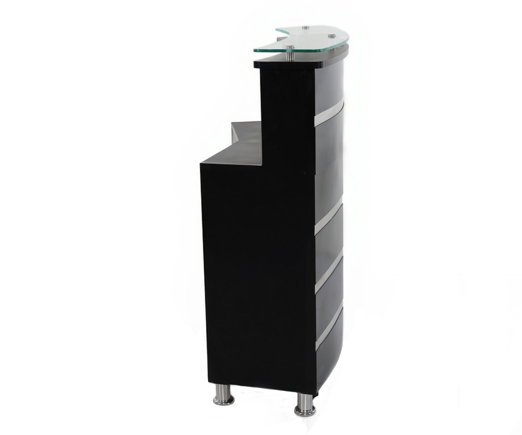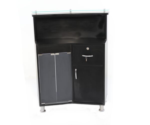 La primera impresión siempre cuenta, y este módulo de recepción está diseñado para transmitir confianza, orden y estilo a cada cliente que llega a tu salón, barbería o spa. Su estructura en negro brillante con detalles metálicos plateados refleja elegancia y modernidad, mientras que la superficie de vidrio templado añade un toque sofisticado y duradero.