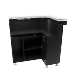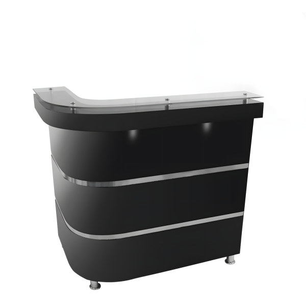 Descubre el Counter Recepción Fara combina curvas sofisticadas y acabados brillantes para crear una recepción de alto impacto visual. Su diseño en negro con líneas metálicas envolventes lo convierte en una pieza moderna que realza cualquier espacio de atención al cliente.