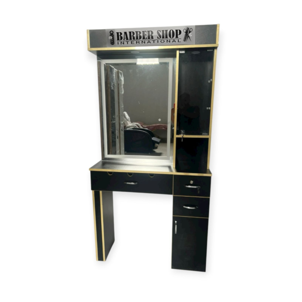 La Estación de Barbería PRO combina estilo clásico con funcionalidad moderna. Su acabado negro con líneas doradas destaca en cualquier salón, mientras el espejo amplio y los múltiples compartimentos permiten trabajar con orden y eficiencia. La cajonera con llave asegura mayor seguridad para herramientas de valor. Diseño robusto, práctico y visualmente impactante para un ambiente profesional. 💈✨