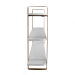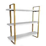 El Exhibidor Personalizado Gold Vulcano es una joya decorativa con aire minimalista. Fabricado con estructura metálica dorada y melamina blanca resistente, este modelo equilibra funcionalidad y diseño, elevando cualquier ambiente con toques de lujo moderno.