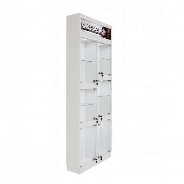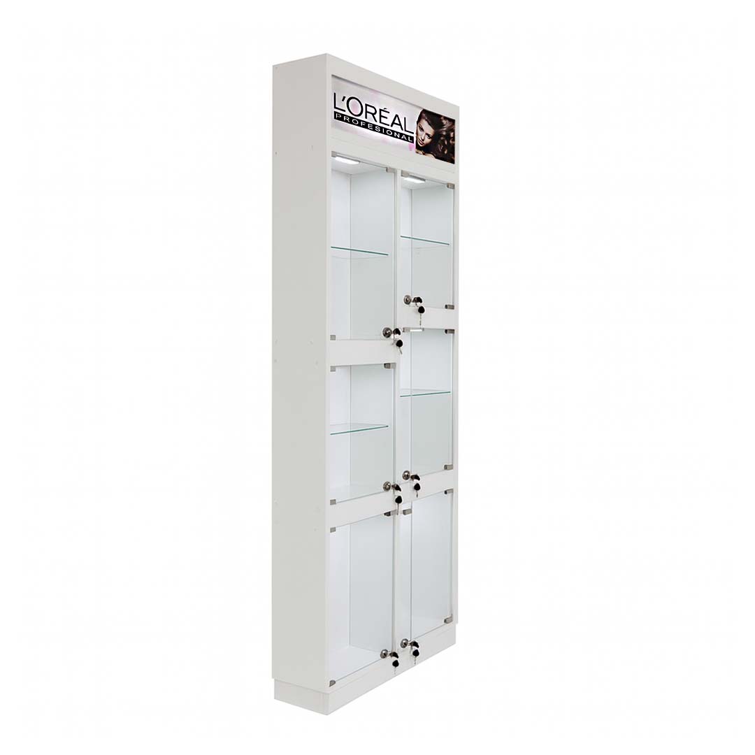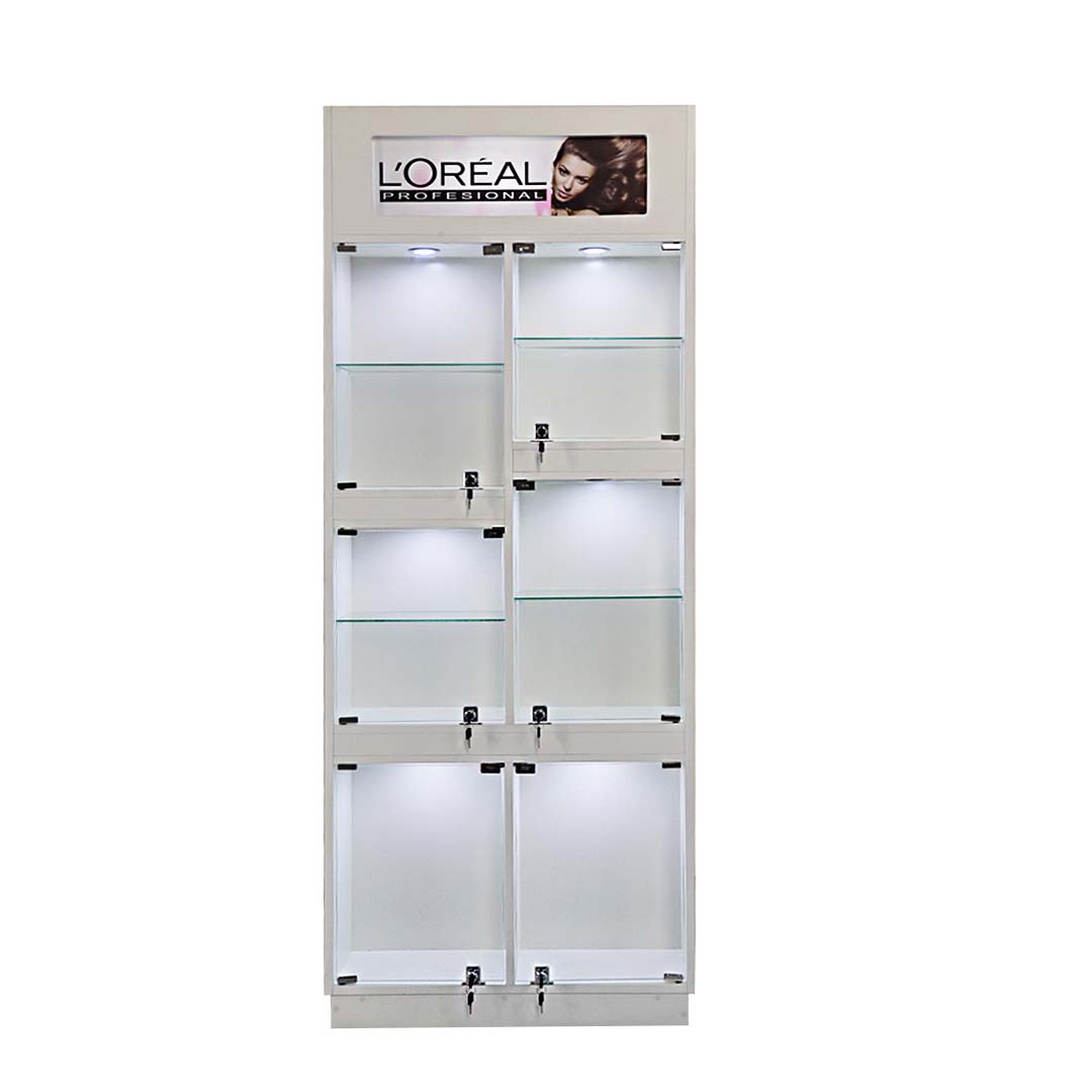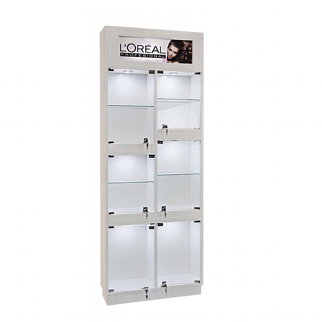 La Vitrina Pro Narel destaca por su diseño limpio y compartimentos con cerradura que exhiben tus productos con orden y brillo. Su iluminación LED realza cada artículo, ideal para salones que valoran la presentación impecable y la funcionalidad en cada rincón.