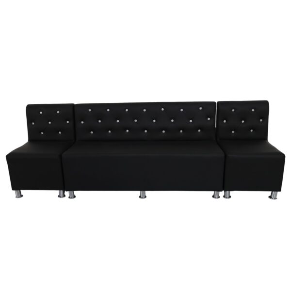 🔸 Tapizado en Cuero Negro Premium: Material resistente al agua, fácil de limpiar y de apariencia moderna, perfecto para mantener un look impecable.