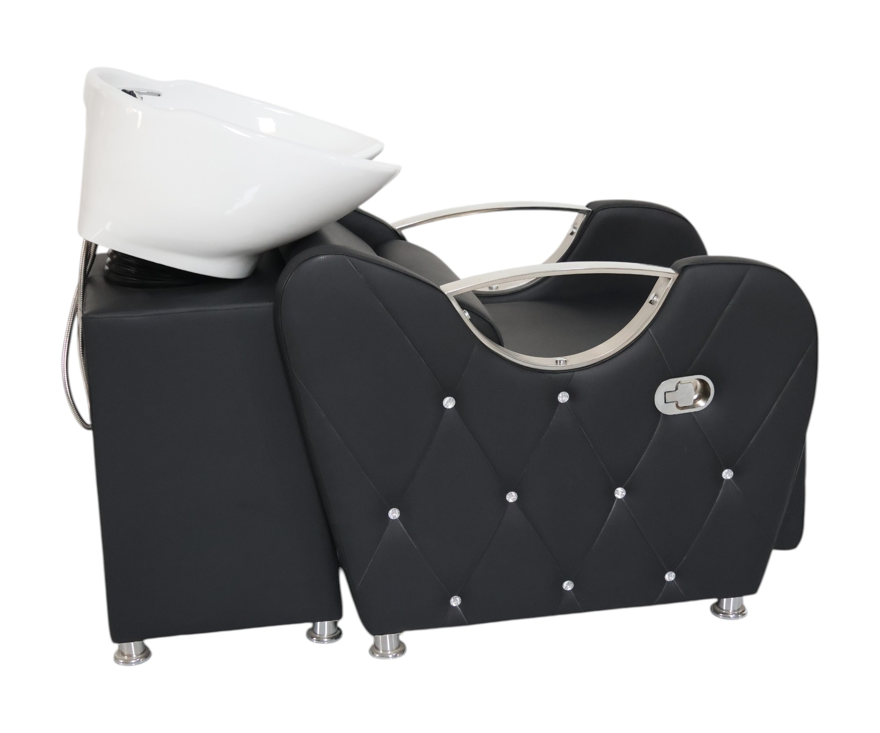 El Lavacabeza Ergonómico Dara está diseñado para brindar confort y funcionalidad con un toque elegante. Su estructura acolchada con costuras tipo diamante y detalles cromados lo convierten en un punto focal moderno para cualquier salón. Perfecto para estilistas que buscan estilo y ergonomía. ◾ Diseño Tapizado con Botones Decorativos: Forrado en cuero PU de alta resistencia, suave al tacto y fácil de limpiar.
