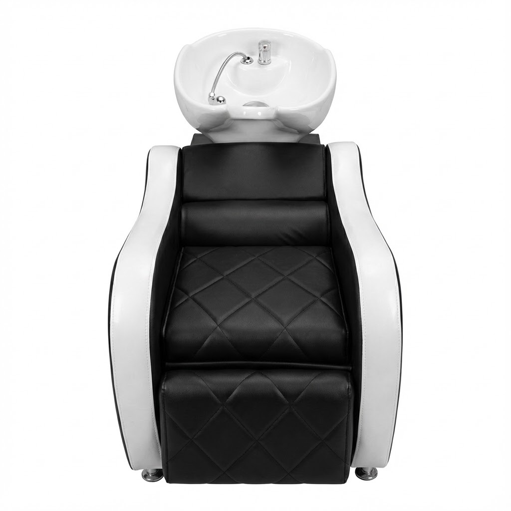 • Poza de Cerámica Profunda: Incluye una bacha de loza blanca de alta durabilidad, resistente a tintes y químicos, con espacio suficiente para trabajar cómodamente melenas largas.