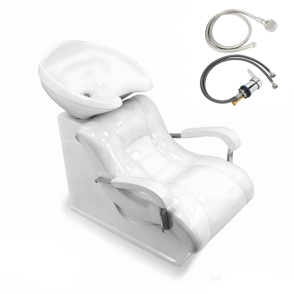 Descubre el Lavacabezas Reclinable Eid, una estación de lavado que transmite limpieza, modernidad y exclusividad desde el primer vistazo. Su diseño integral en blanco brillante con acabado perlado irradia sofisticación, mientras su asiento ergonómico acolchado brinda máximo confort. Incluye poza de cerámica blanca reclinable con cuello anatómico, monomando cromado y ducha flexible con conexiones listas para instalar.