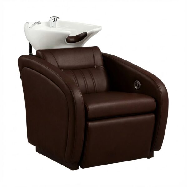 Tags: Lavacabezas Jena, mueble de peluquería marrón, lavacabezas spa, sillón de lavado chocolate, equipamiento de lujo, lavacabezas eléctrico, muebles de estética, diseño moderno, confort premium, bacha de cerámica blanca.