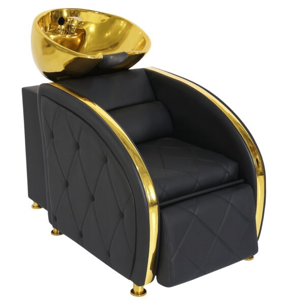El Lavacabezas “DANNA Estilo Gold” es una pieza de declaración de lujo absoluto. Su impresionante poza dorada y acabados metálicos convierten la zona de lavado en el punto focal del salón, ideal para negocios que buscan proyectar exclusividad, riqueza visual y un estilo “High End”.
