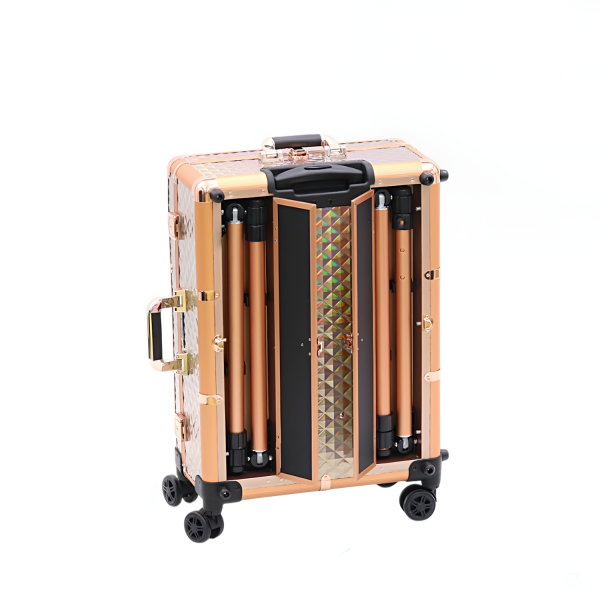 El Maletín de Maquillaje Iria destaca por su gran capacidad interna y estética profesional. Perfecto para maquilladoras que necesitan llevar todo su kit con seguridad, orden y elegancia.