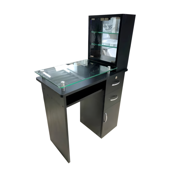 La Mesa Manicure Daila es una estación de trabajo profesional que combina elegancia, organización y funcionalidad. Con un diseño sobrio y estilizado, se adapta perfectamente a espacios modernos que buscan optimizar cada rincón del salón sin perder estética ni eficiencia.