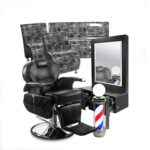 «Impresiona a tus clientes desde el primer momento con un mobiliario que refleja lujo, confort y profesionalismo. Este Pack Emprendedor incluye sillón de barbería vintage, módulo con espejo, sofá de espera y pole barbero, todo en un elegante acabado negro que transmite confianza y estilo. Diseñado para que tu barbería no solo luzca increíble, sino que se convierta en la favorita de tus clientes.»