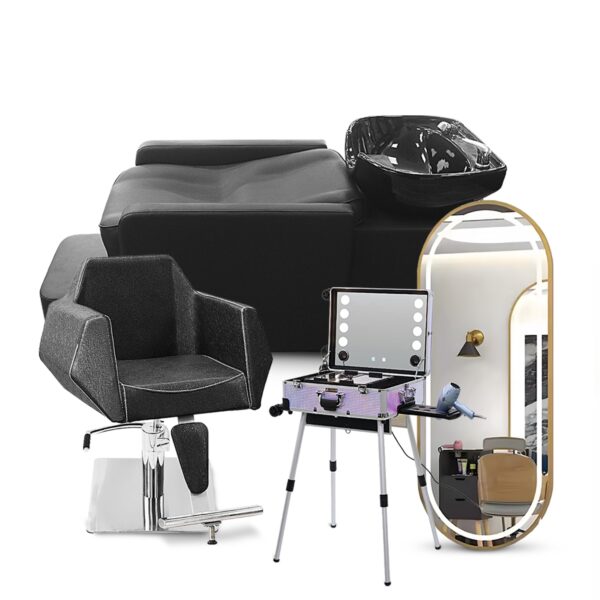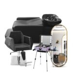 «Impresiona a tus clientes desde el primer momento con un mobiliario que refleja lujo, confort y profesionalismo. Este Pack Master incluye sillón de barbería vintage, módulo con espejo, sofá de espera y pole barbero, todo en un elegante acabado negro que transmite confianza y estilo. Diseñado para que tu barbería no solo luzca increíble, sino que se convierta en la favorita de tus clientes.»