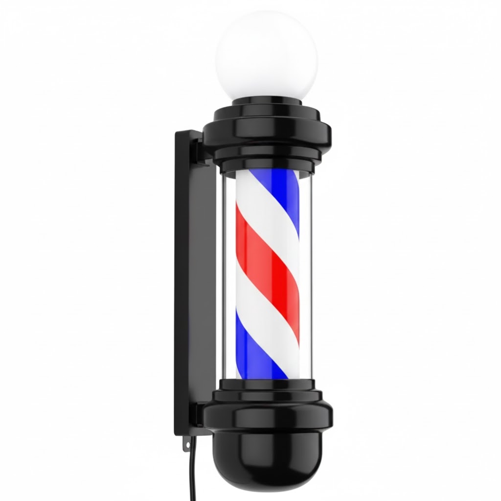 • Movimiento Rotatorio: Equipado con un motor interno silencioso que hace girar el cilindro interior, creando el clásico efecto de espiral infinita con los colores rojo, blanco y azul.