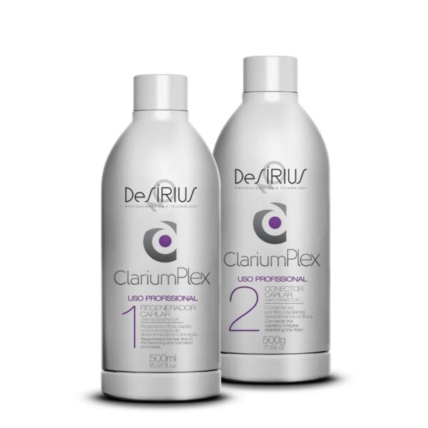 ClariumPlex de Desirius es el tratamiento ideal para regenerar y proteger la fibra capilar durante procesos químicos intensivos. Este dúo profesional (Paso 1 Regenerador + Paso 2 Conector) fortalece el cabello desde el interior, evitando el quiebre y devolviendo elasticidad y brillo natural.