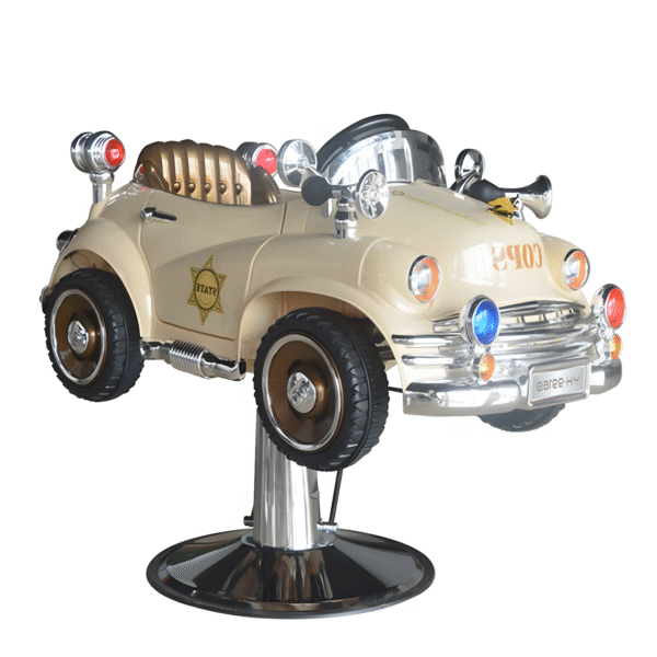 La Silla Carrito Infantil Sheriff evoca el encanto de los autos clásicos de patrullero con un diseño detallado y funcional, ideal para brindar una experiencia divertida y cómoda a los pequeños. Perfecta para barberías infantiles que desean diferenciarse con estilo y originalidad.
