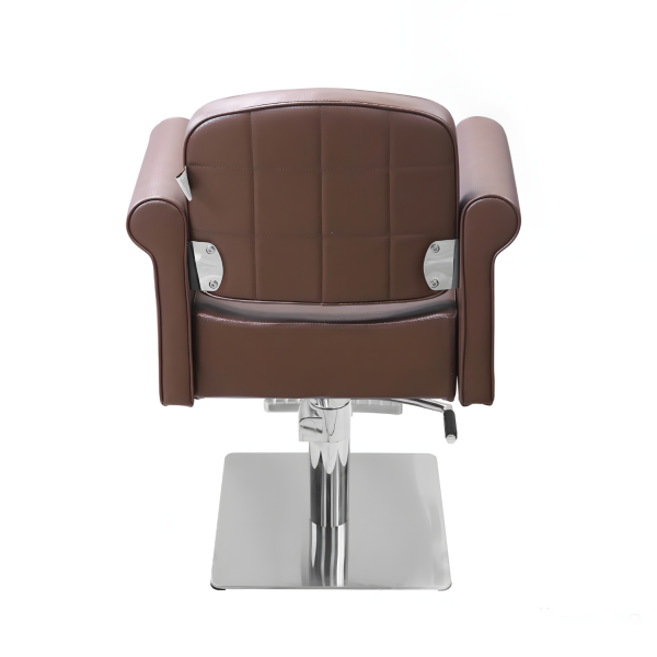 La Silla de Corte Yone combina elegancia retro con funcionalidad moderna. Su diseño robusto, con tapizado marrón de textura sutil y acabados curvos, transmite autoridad y confort en cada atención. Ideal para estilistas que buscan una pieza duradera, versátil y con carácter. ◾ Tapizado de Cuero Sintético Texturizado: Fácil de limpiar, resistente y con estética profesional que añade un toque clásico a tu salón.