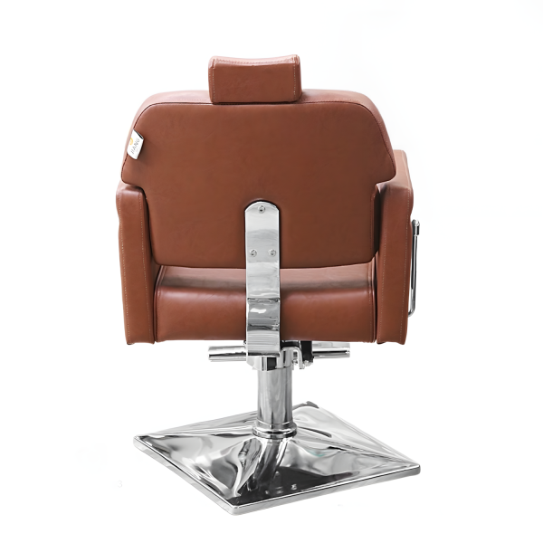 La Silla Reclinable destaca por su diseño robusto, elegante y cómodo. Su tapizado marrón en cuero sintético, junto con su respaldo ergonómico, cabecera acolchada y reposapiés con recubrimiento, la convierten en una opción ideal para barberías o salones modernos que priorizan estilo y funcionalidad.