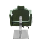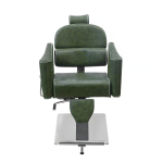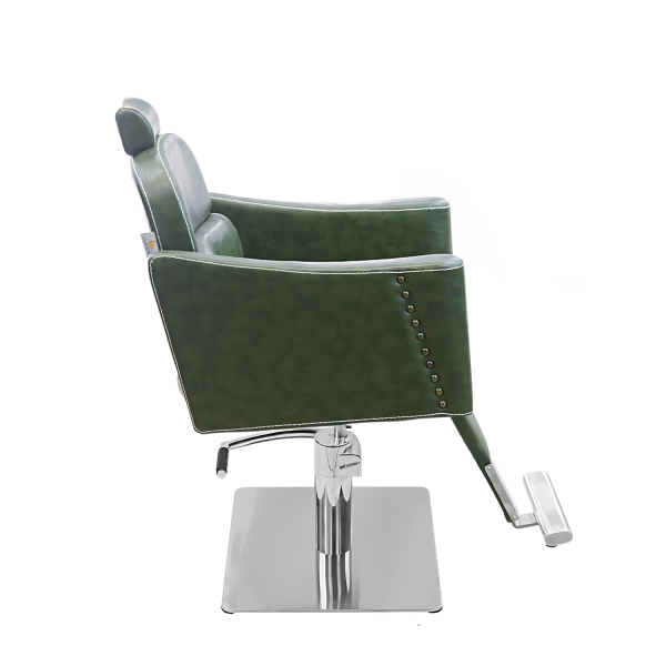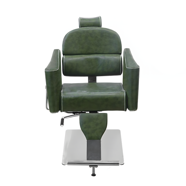 La Silla Reclinable Hanna combina un diseño clásico con toques modernos. Su tapizado verde vintage le da un carácter único, ideal para barberías o salones que buscan diferenciarse. Sus líneas curvas, apoyabrazos envolventes y cabecera acolchada ofrecen máxima comodidad al cliente durante cada sesión.
