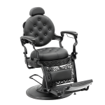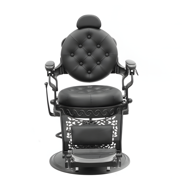 El Sillón Barbero Emperador es una pieza de presencia imponente, con diseño clásico capitoné y estructura metálica robusta en acabado negro. Ideal para barberías que quieren transmitir elegancia, autoridad y tradición.