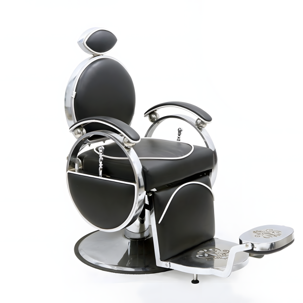 El Sillón Barbero Vintage es una obra de arte funcional. Su estructura circular cromada, costuras en contraste y formas clásicas lo convierten en un modelo que evoca elegancia atemporal y distinción.