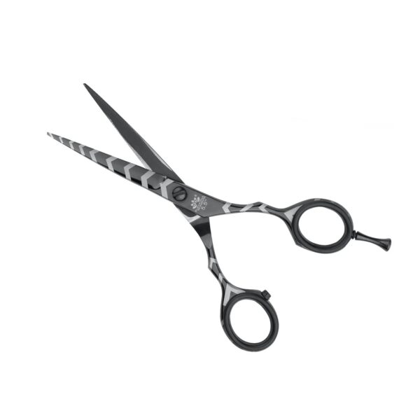 ✂ Estilo Profesional: El diseño en zigzag gris sobre negro convierte a esta tijera en una pieza llamativa y moderna, ideal para barberos que marcan tendencia.