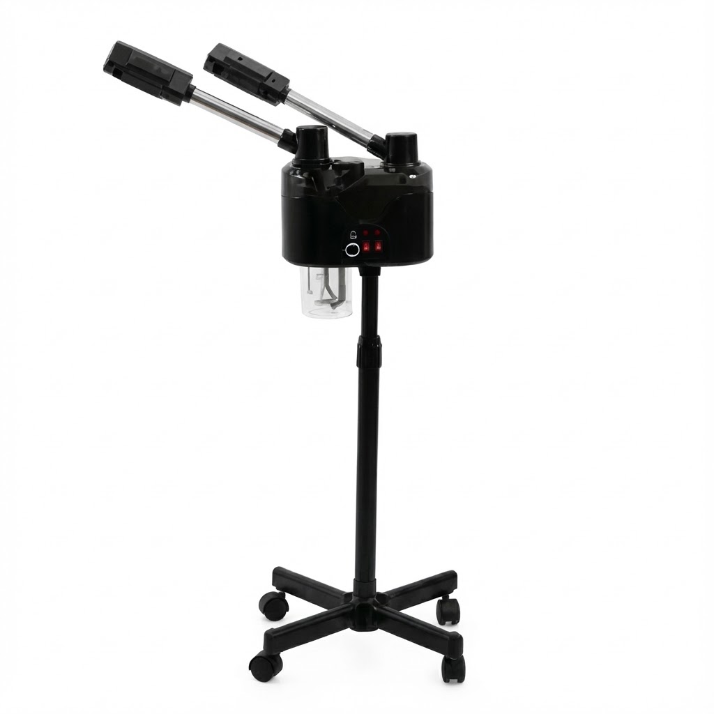 • Sistema de Doble Brazo: Cuenta con dos boquillas independientes y ajustables que permiten dirigir el flujo de vapor con precisión a diferentes áreas del rostro o cuello al mismo tiempo.